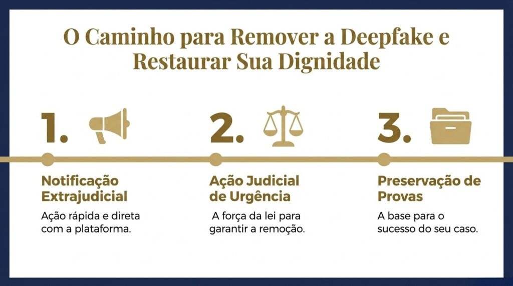 Para outros tipos de deepfake, o artigo 19 determina a remoção mediante ordem judicial. Ainda assim, o processo é ágil quando conduzido por advogado experiente. A tutela de urgência garante decisões em poucos dias.