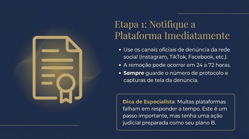 Todavia, quando a plataforma ignora ou demora, o advogado se torna indispensável. Apenas ele pode ingressar com ação judicial e obter ordem de remoção compulsória. Além disso, o profissional garante a correta preservação de provas e busca indenização pelos danos sofridos.