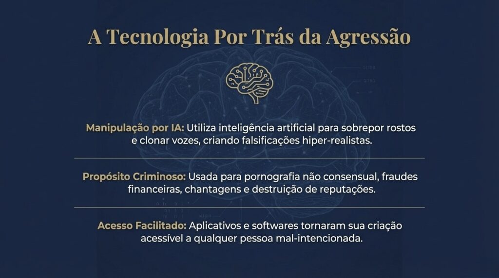 Quem faz isso age na sombra. Usa tecnologia para manipular rostos e vozes, criando vídeos falsos que parecem reais. Contudo, esse criminoso não pode ficar impune. A lei brasileira protege você e oferece caminhos concretos para tirar esse conteúdo do ar.